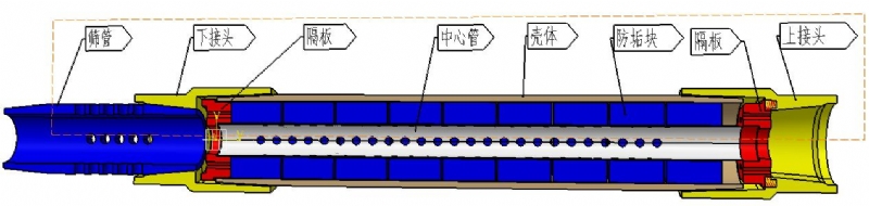 原理:將特種工藝成型的固體化學(xué)阻垢塊放入阻垢筒中,阻垢筒中的固體化學(xué)阻垢塊通過多孔壁緩慢溶解、釋放在井筒原油中,阻垢劑通過吸附、分散等作用將垢晶分離,減少垢質(zhì)在油井管串上的吸附、聚集,達(dá)到防止油管、桿、泵結(jié)垢的目的。